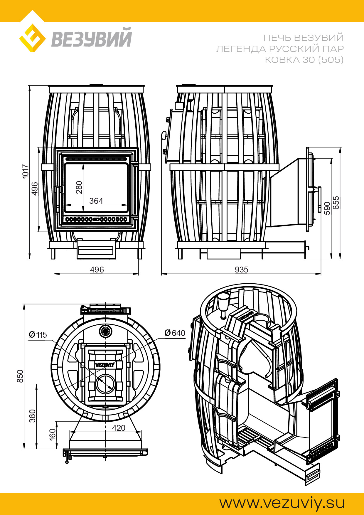 Печи модельного ряда Легенда Русский Пар от компании Везувий это новый модельный ряд чугунных печей, сочетающих в себе долговечность чугунной топки и закрытую каменку, позволяющую получать мелкодисперсный пар. Печи Русский Пар выполнены из толстостенного чугуна, вмещают значительное количество камней и могут долгое время хранить тепло, однако требуют значительного времени для подготовки бани и нагрева всей массы камней. Печь укомплектована чугунной дверцей с панорамным стеклом (модели 505) и чугунным колосником. Для получения мелкодисперсного пара печь оборудована закрытой каменкой. Закрытая каменка выполнена в виде цельного короба из нержавеющей стали, размещенного в корпусе печи и прогреваемого круговым потоком пламени. Вода в закрытую каменку подается через заливную воронку.