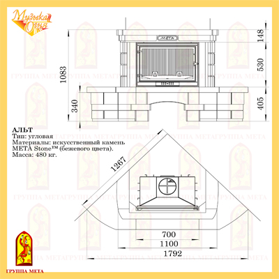 Габаритные размеры: 1792(ш)х1267(к)х1083(в) мм