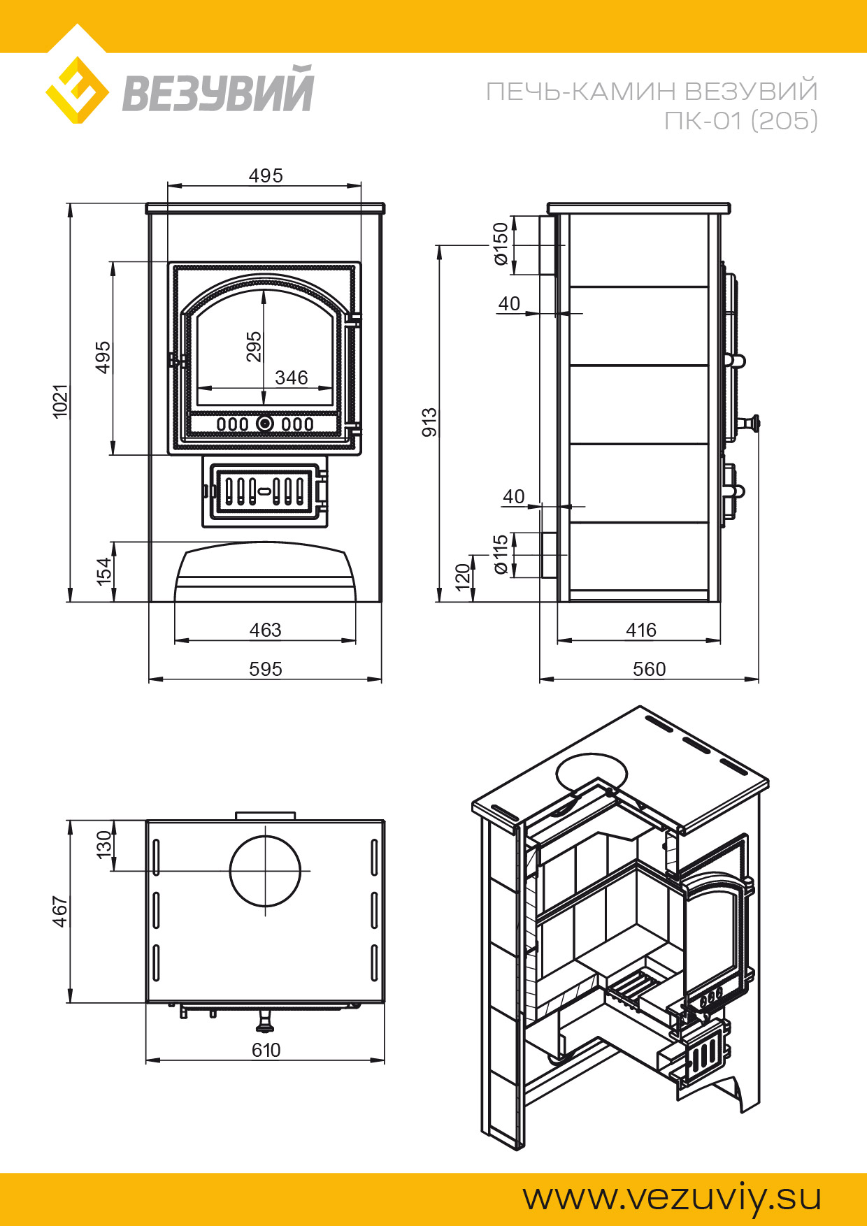 Печь-камин Везувий ПК-01 (205), амфиболит